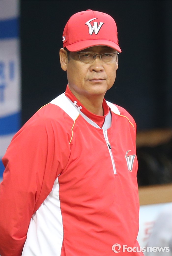 (서울=포커스뉴스) 26일 서울 잠실구장에서 열린 2016 프로야구 SK-두산 경기에서 SK 김용희 감독이 선수들의 훈련을 지켜 보고 있다.