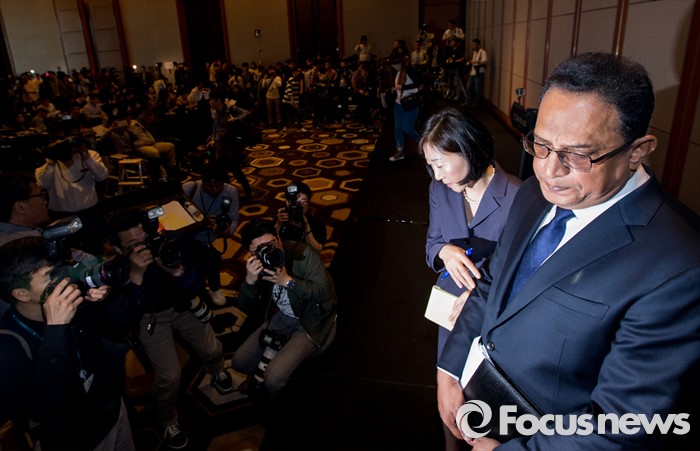 (서울=포커스뉴스) 2일 오전 서울 영등포구 콘래드호텔에서 열린 '옥시레킷벤키저(현 RB코리아) 가습기 살균제 파동' 관련 기자회견에서 아타 울라시드 사프달 옥시코리아 대표가 질의응답을 마친 후 발걸음을 옮기고 있다.