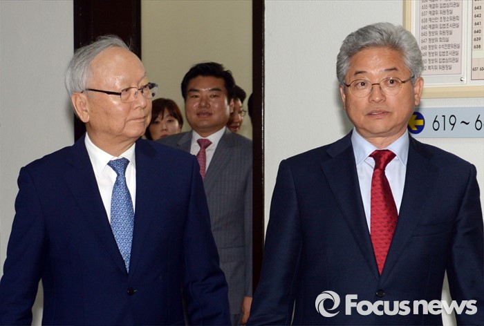 (서울=포커스뉴스) 이병호(왼쪽) 국정원장과 이철우 국회 정보위 여당간사가 27일 오후 서울 여의도 국회에서 열린 정보위원회 간담회에 참석하고 있다. 이날 국회 정보위 간담회에서는 북한의 제5차 핵실험 가능성과 잠수함 탄도미사일 실험 등 대북 현안에 대해 논의한다.