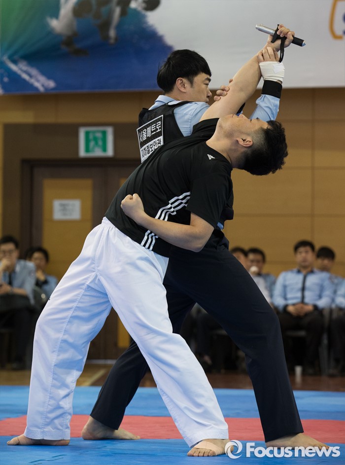 (서울=포커스뉴스) 28일 오후 서울 성동구 서울메트로 인재개발원에서 열린 지하철보안관 무술 경연 대회에서 서울메트로 소속 지하철보안관들이 무술 시범을 선보이고 있다.
