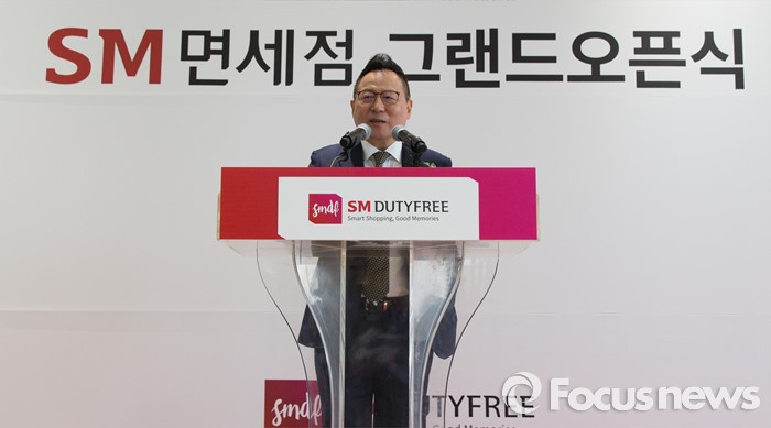(서울=포커스뉴스) 29일 오전 서울 종로구 SM면세점 서울점에서 열린 그랜드 오픈식에 참석한 권희석 SM면세점 대표이사가 인사말을 하고 있다.