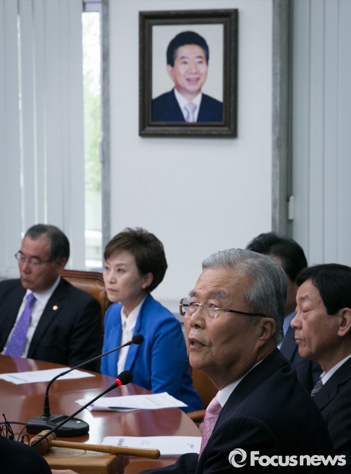 | △ 취재진 질문 답하는 김종인 |