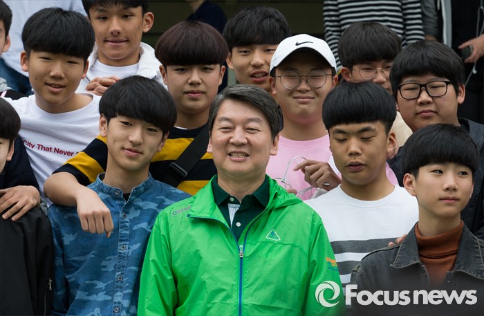 (양평=포커스뉴스) 국민의당 20대 총선 당선자 워크숍 이틀째인 27일 오전 경기도 양평 한화리조트에서 안철수 국민의당 상임공동대표가 학생들과 기념촬영을 하고 있다.