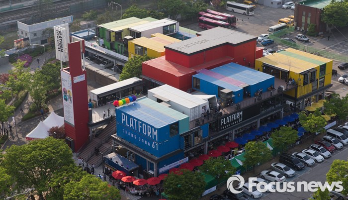 (서울=포커스뉴스) 29일 오후 서울 도봉구 복합문화공간 '플랫폼 창동 61'에 시민들이 방문하고 있다. 플랫폼 창동 61은 음악, 패션, 먹거리 분야 콘텐츠가 모인 복합문화공간으로 빨강, 파랑, 노랑 등 원색으로 칠해 꾸민 컨테이너 61개를 모아 공간을 구성했다.