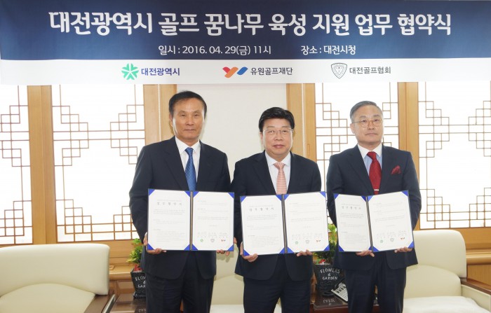 유원골프재단은 29일 대전시청에서 대전시, 대전시골프협회와 업무협약(MOU)를 체결하고, 골프 꿈나무 육성을 위해 상호 협력키로 했다.