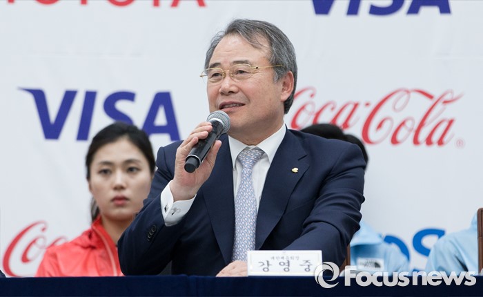 (서울=포커스뉴스) 27일 오후 서울 노원구 태릉선수촌에서 제31회 리우하계올림픽대회 D-100일 미디어데이에 참석한 강영중 대한체육회장이 인사말을 하고 있다.