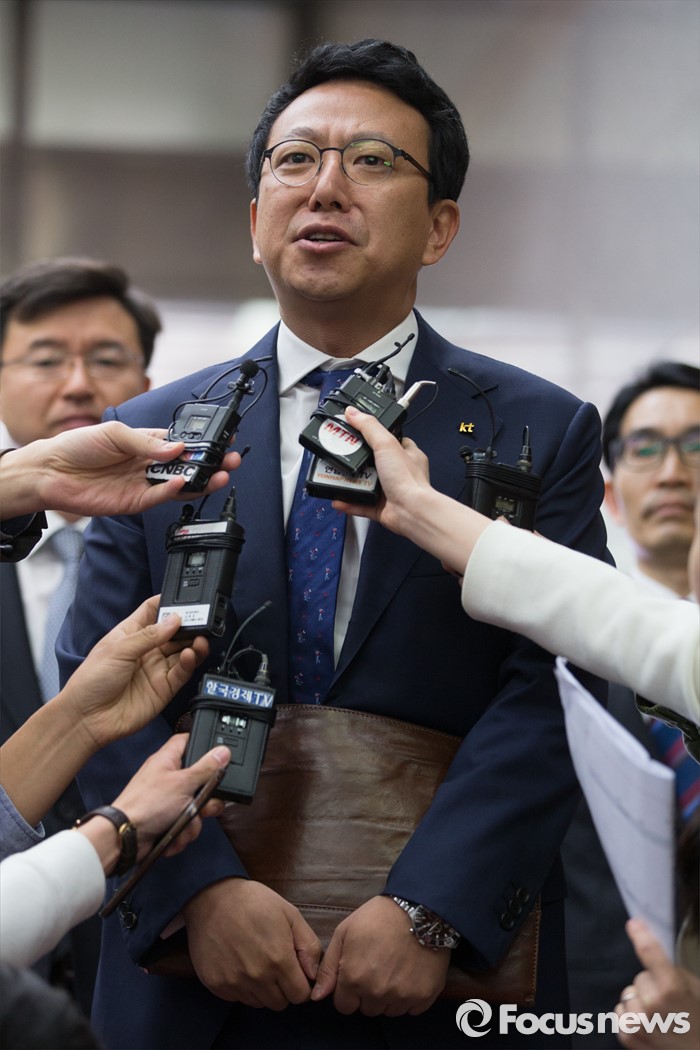 (성남=포커스뉴스) 최영석 KT 정책협력담당 상무가 29일 오전 경기도 성남시 한국정보통신기술협회에서 진행된 이동통신용 주파수 경매에 참가하기 위해 입장, 취재진의 질문에 답하고 있다.