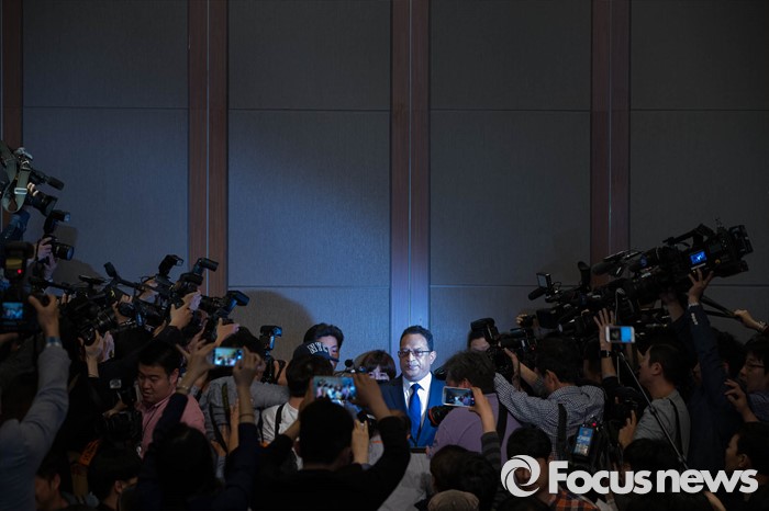 (서울=포커스뉴스) 지난 2011년 가습기 살균제 사망사건이 발생한지 5년 만에 옥시레킷벤키저 한국법인장 아타 샤프달 대표가 2일 오전 서울 영등포구 콘래드호텔에서 기자회견을 열고 입장을 밝히고 있다.