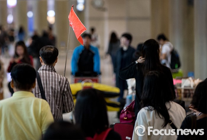 (영종도=포커스뉴스) 중국 노동절 연휴와 일본 골든 위크를 맞아 1일 외국인 관광객들이 인천국제공항을 통해 입국하고 있다.