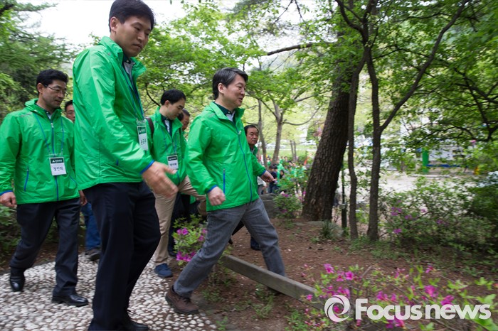 (양평=포커스뉴스) 국민의당 20대 총선 당선자 워크숍 이틀째인 27일 오전 경기도 양평 한화리조트에서 안철수 국민의당 상임공동대표를 비롯한 당선인들이 아침 산책을 하고 있다.