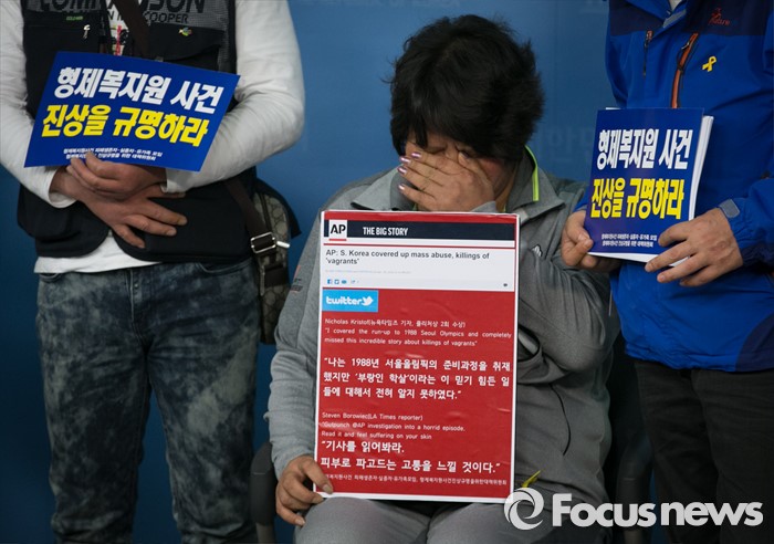 | △ 슬픔에 잠긴 형제복지원 사건 피해생존자 |