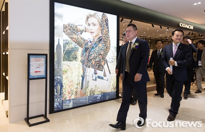 (서울=포커스뉴스) 29일 오전 서울 종로구 SM면세점 서울점에서 열린 그랜드 오픈식에 참석한 권희석 SM면세점 대표이사와 내빈들이 매장을 둘러보고 있다.