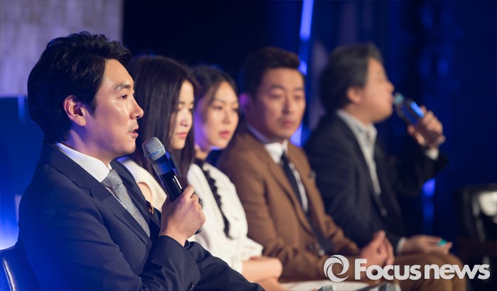(서울=포커스뉴스) 2일 오전 서울 중구 웨스틴조선호텔에서 열린 영화 '아가씨' 제작보고회에 참석한 배우 조진웅이 인사말을 하고 있다.