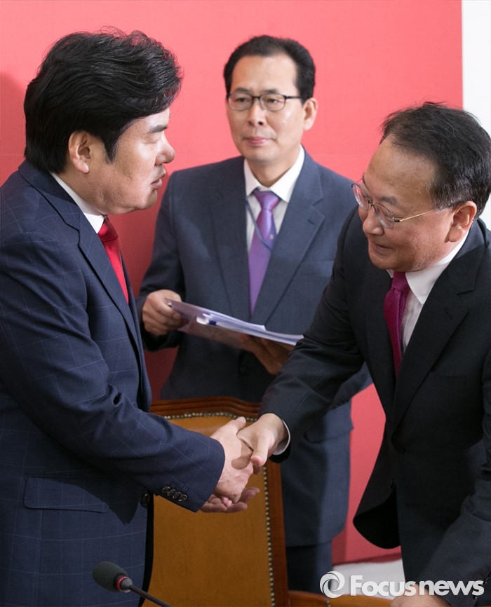 | △ 악수하는 유일호·원유철 |