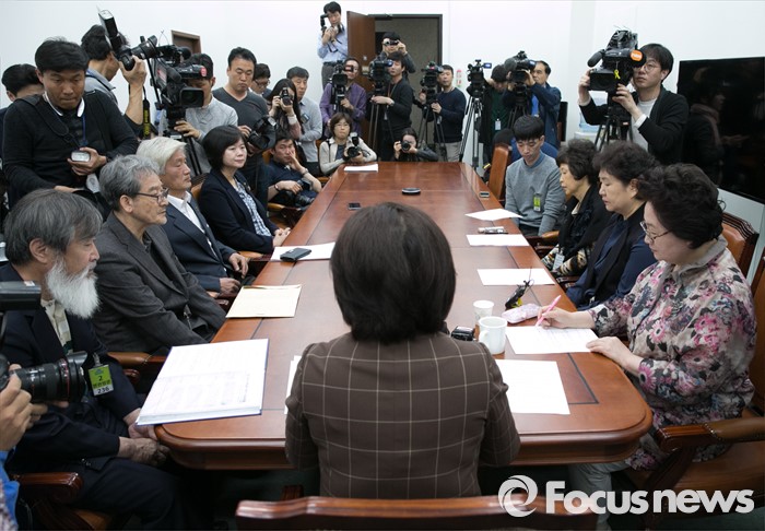 (서울=포커스뉴스) 심상정 정의당 상임대표가 28일 오전 서울 여의도 국회에서 가습기 살균제 3, 4등급 피해자 모임과 의료기록 분석 결과 및 피해 진상규명 등을 위한 간담회를 하고 있다.