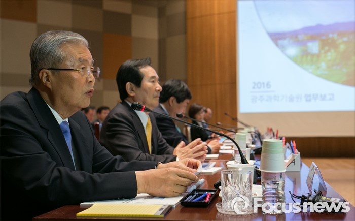 (광주=포커스뉴스) 김종인 더불어민주당 비대위 대표가 25일 오후 광주과학기술원(GIST, 지스트)을 방문해 업무보고를 듣기에 앞서 모두발