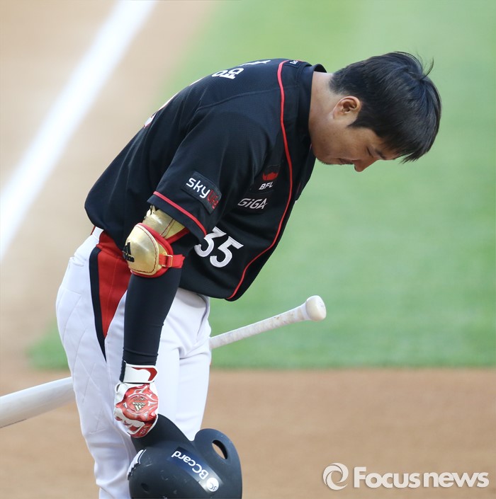 (서울=포커스뉴스) 29일 서울 잠실구장에서 열린 2016 프로야구 kt-LG 경기에서 지난해 kt로 이적한 이진영이 1회초 LG전 첫 타석에 들어서며 1루쪽 관중석의 LG 팬들에게 고개숙여 인사하고 있다.