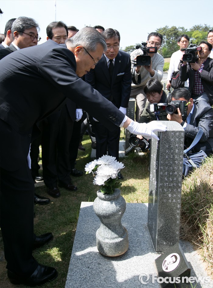 (광주=포커스뉴스) 김종인 더불어민주당 비대위 대표와 20대 총선 당선인 및 광주·전남지역 낙선 인사들이 25일 오전 광주 북구 국립 5·18민주묘지를 방문해 민주열사 묘역을 둘러보고 있다.