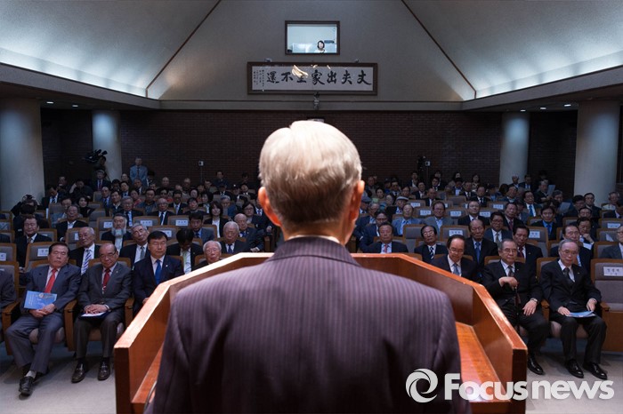 (서울=포커스뉴스) 윤봉길 의사의 상하이 의거 84주년을 맞아 29일 오전 서울 서초구 매헌기념관에서 열린 기념식에 참석한 윤봉길의사기념사업회 김진우 회장이 기념사를 하고 있다.