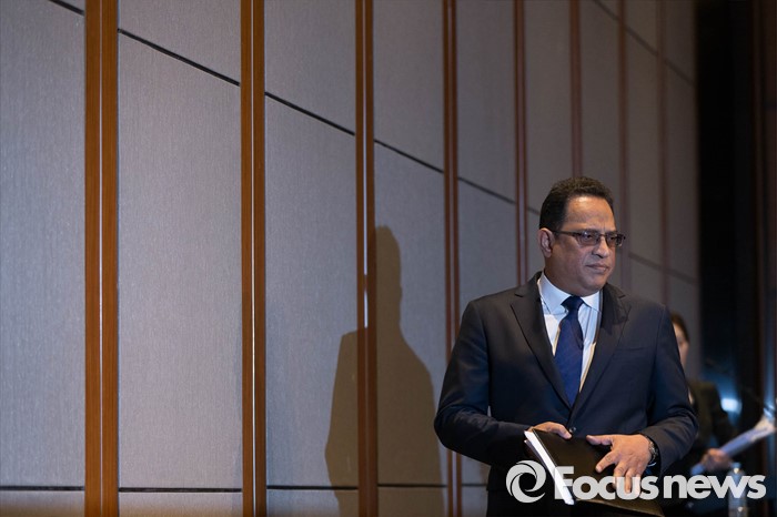 | △ 기자회견장 입장하는 아타 샤프달 옥시 한국법인장 |