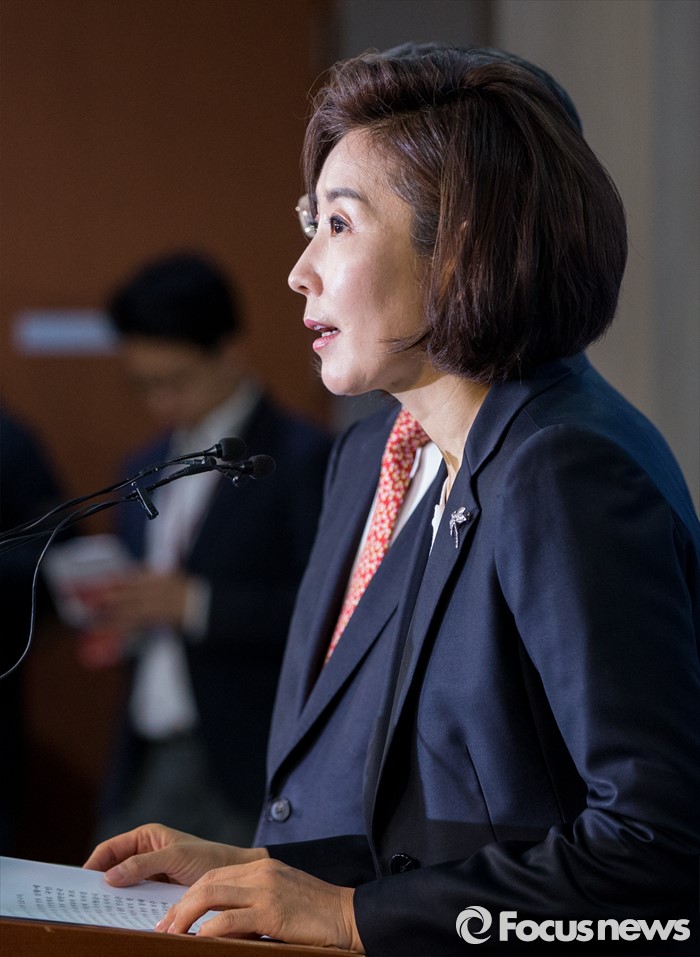 (서울=포커스뉴스) 새누리당 차기 원내대표 경선 후보등록 마감 예정일인 1일 오전 서울 여의도 국회 정론관에서 차기 원내대표 후보인 나경원 의원이 출마 기자회견을 갖고 있다.