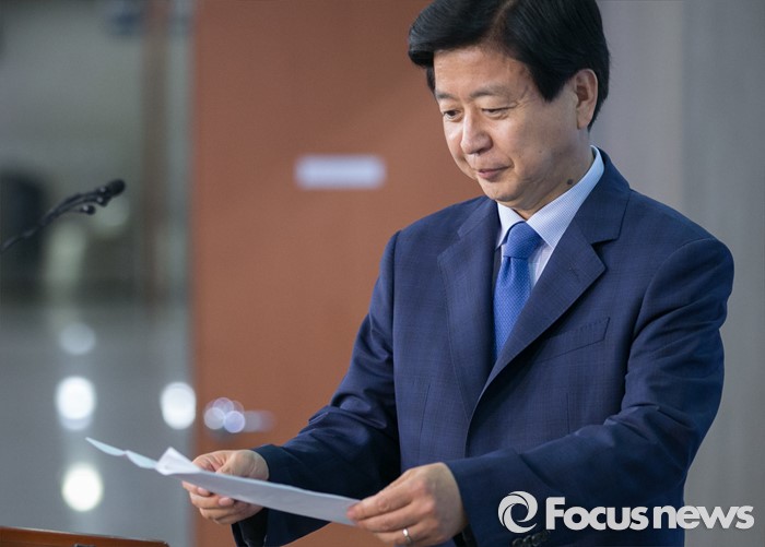 (서울=포커스뉴스) 노웅래 더불어민주당 의원이 29일 오후 서울 여의도 국회 정론관에서 원내대표 출마 기자회견을 위해 입장하고 있다.