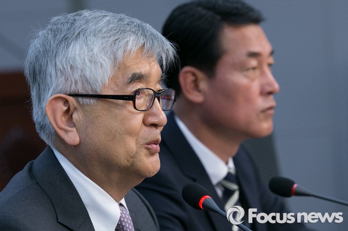 (서울=포커스뉴스) 최장집(왼쪽) 고려대 명예교수가 25일 오후 서울 여의도 국회 의원회관에서 새누리당 혁신모임 외부인사 간담회에 초청되어 강연을 하고 있다.