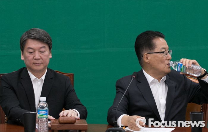 (서울=포커스뉴스) 2일 오전 서울 여의도 국회에서 열린 국민의당 최고위원회의에 참석한 박지원 원내대표가 물을 마시고 있다. 왼쪽은 안철수 상임공동대표.
