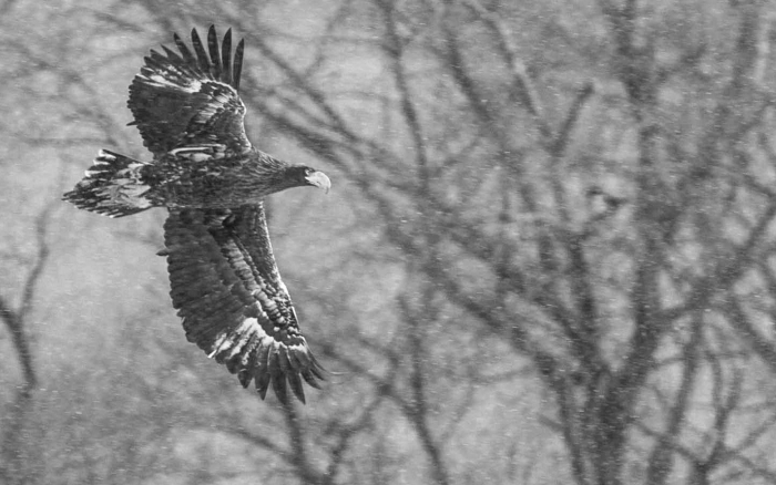 이번 전시를 기획한 류병학 독립큐레이터는 "대한민국 사진계는 그동안 사진의 형식과 내용에만 주목했을 뿐 사진이라는 매체에 대한 접근에는 소홀했다"면서 "자하미술관 기획전 '굿 나잇, 아날로그 포토 / 굿 모닝, 디지털 포토'는 '매체로서의 사진'으로 기획하고자 한다"고 밝혔다.사진작가 김연수의 '한강의 마지막 황제 참수리' 작품.<사진제공=자하미술관>