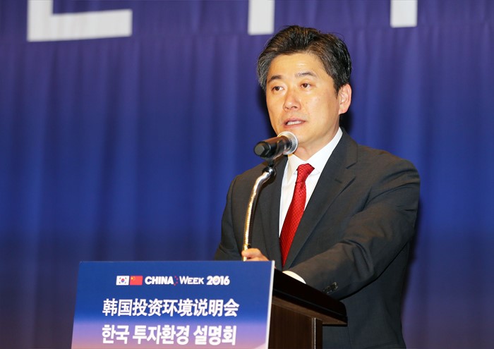 (서울=포커스뉴스) 정승일 산업통상자원부 무역투자실장이 26일 오전 서울 광화문 포시즌호텔 그랜드볼룸에서 제2차 차이나 위크(China Week) 행사 일환으로 열린 한국투자설명회에 참석해 축사를 하고 있다. <사진제공=산업통상자원부>