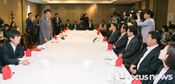 이날 워크숍은 '당선자 결의문' 채택으로 마무리된다.원유철(왼쪽 두번째) 새누리당 원내대표가 25일 오후 서울 여의도의 한 중식당에서 열린 중진의원 오찬 간담회에 참석해, 발언하고 있다. 2016.04.25 박철중 기자