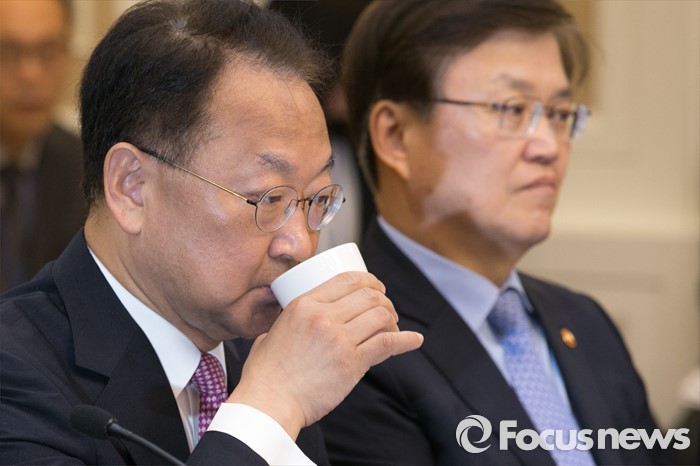 (서울=포커스뉴스) 유일호 경제부총리가 27일 오전 서울 여의도 국회 귀빈식당에서 열린 청년 · 여성 일자리대책 당정협의에 참석해, 물을 마시고 있다.