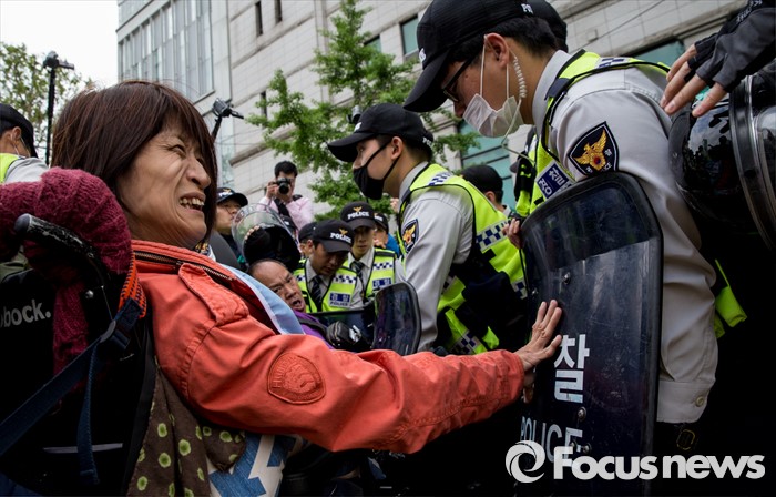 (서울=포커스뉴스) 근로자의날을 맞은 1일 오후 서울 종로구 대학로에서 민주노총 주최로 열린 '2016 세계노동절대회'에서 경찰과 420장애인차별철폐공동투쟁단원들이 충돌하고 있다.