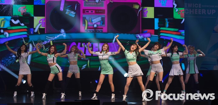 (서울=포커스뉴스) 25일 오후 서울 광진구 예스24 라이브홀에서 열린 걸그룹 트와이스의 미니앨범 'PAGE TWO' 발표 쇼케이스에 참석한 멤버들이 신곡무대를 선보이고 있다.