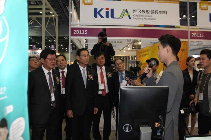 (고양=포커스뉴스) 최정호 국토교통부 2차관이 26일 경기 고양시 일산 킨텍스에서 열린 국제물류산업전 개막식에 전시관을 둘러보고 있다. <사진제공=국토교통부>