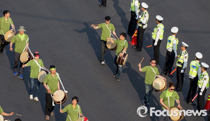 (서울=포커스뉴스) 근로자의날을 맞은 1일 오후 서울 종로 일대에서 민주노총 주최로 열린 '2016 세계노동절대회'에서 참가자들이 행진을 이어가고 있다.