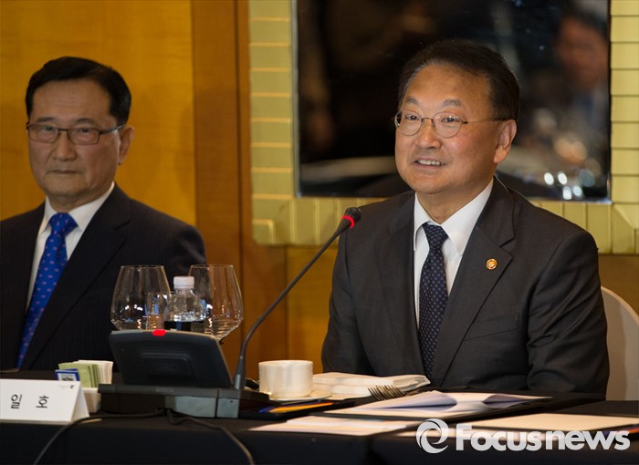 (서울=포커스뉴스) 유일호 경제부총리 겸 기획재정부 장관이 28일 오후 서울 서초구 JW메리어트호텔에서 열린 역대 부총리 및 장관과의 만찬 간담회에서 모두발언 하고 있다.