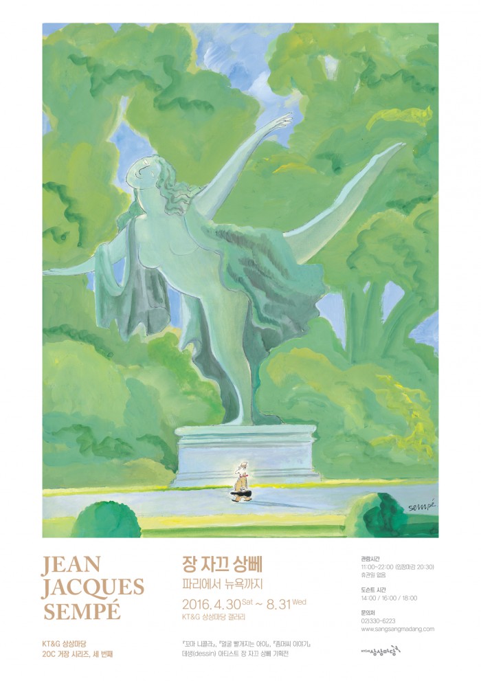 '장 자끄 상뻬-파리에서 뉴욕까지'를 주제로 오는 30일부터 8월31일까지 서울 마포 서교동에 위치한 KT&G상상마당 갤러리에서 열리는 이번 전시회에선 '꼬마 니콜라'와 '얼굴이 빨개지는 아이', '좀머씨 이야기' 등 유명 소설의 삽화를 포함해 파리와 뉴욕에서 활동했던 작가의 60년 작품 세계를 아우르는 원본 작품 150여점이 전시된다.