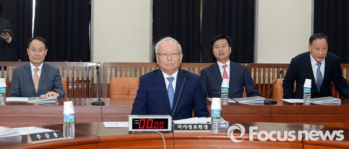 (서울=포커스뉴스) 이병호 국정원장이 27일 오후 서울 여의도 국회에서 열린 정보위원회 간담회에 출석해, 자리에 앉아 있다. 이날 국회 정보위 간담회에서는 북한의 제5차 핵실험 가능성과 잠수함 탄도미사일 실험 등 대북 현안에 대해 논의한다.