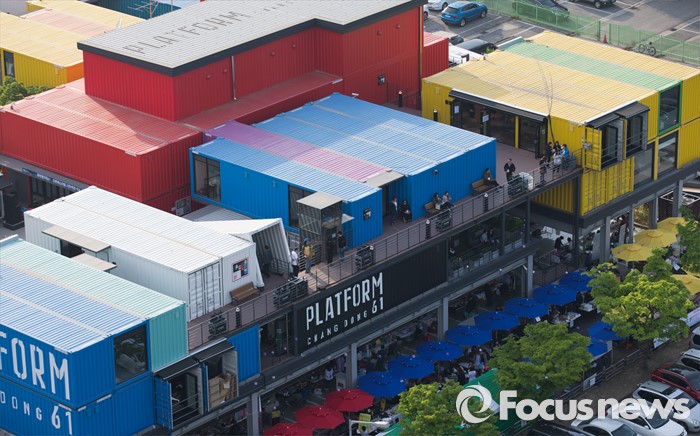 (서울=포커스뉴스) 29일 오후 서울 도봉구 복합문화공간 '플랫폼 창동 61'에 시민들이 방문하고 있다. 플랫폼 창동 61은 음악, 패션, 먹거리 분야 콘텐츠가 모인 복합문화공간으로 빨강, 파랑, 노랑 등 원색으로 칠해 꾸민 컨테이너 61개를 모아 공간을 구성했다.