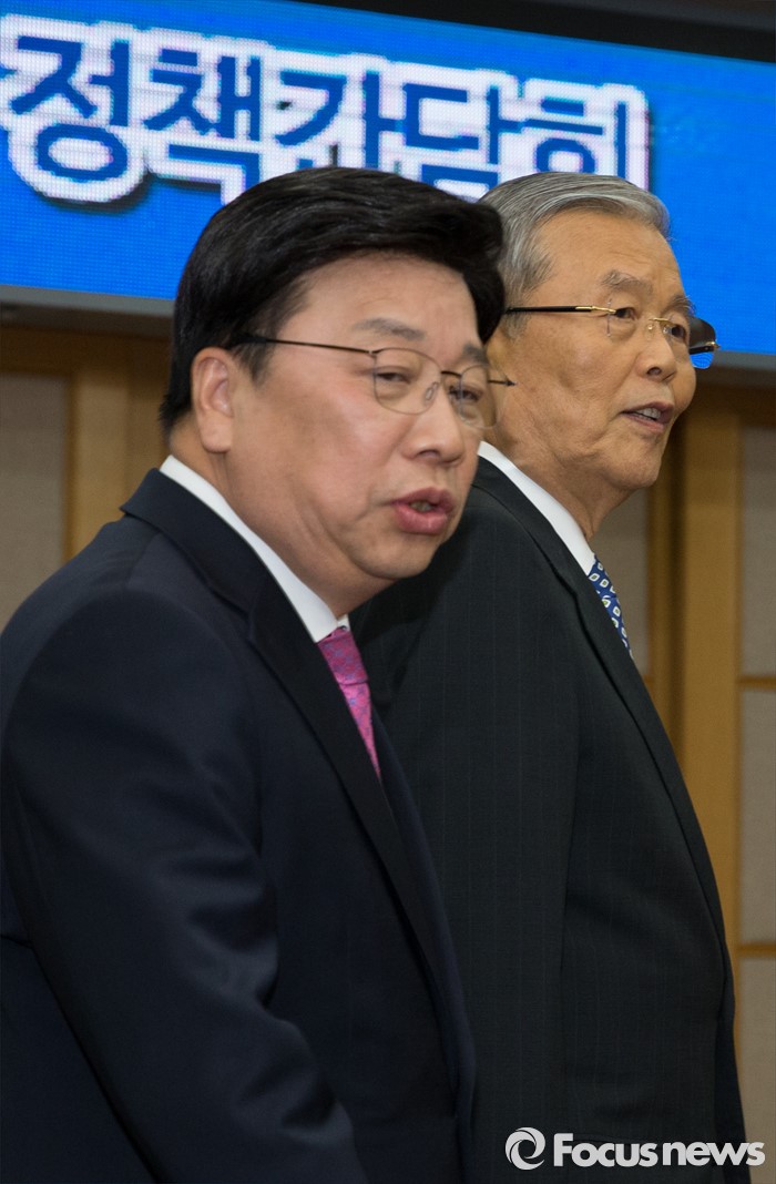 (대전=포커스뉴스) 김종인 더불어민주당 비대위 대표와 이종걸 원내대표를 비롯한 더민주 의원 및 당직자들이 28일 오후 대전시청을 방문한 가운데 대회의실에서 열린 더불어민주당-대전시 정책간담회에서 김종인 대표가 권선택 시장과 입장하고 있다.