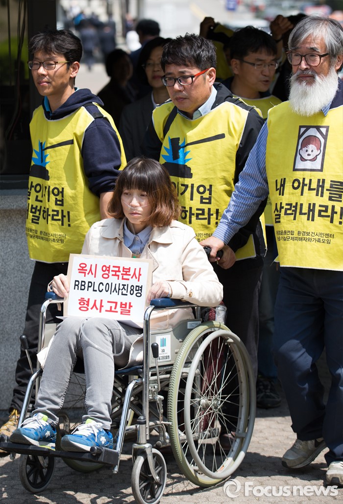 (서울=포커스뉴스) 2일 오후 서울 서초구 서울중앙지방검찰청에 가습기살균제 피해자와 가족모임과 환경보건시민센터 관계자들이 옥시레킷벤키저 대표 등 8명의 이사진을 형사고발 하기 위해 들어서고 있다.