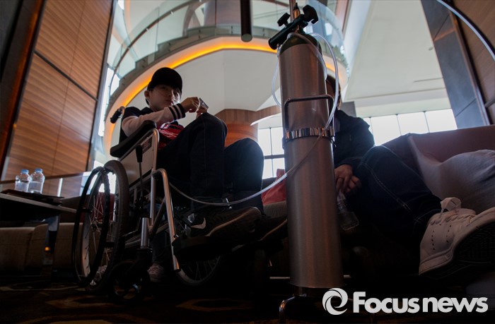 (서울=포커스뉴스) 2일 오전 서울 영등포구 콘래드호텔에서 열린 '옥시레킷벤키저(현 RB코리아) 가습기 살균제 파동' 관련 기자회견장 앞에서 가습기 살균제 피해자 임성준 군이 생각에 잠겨 있다.
