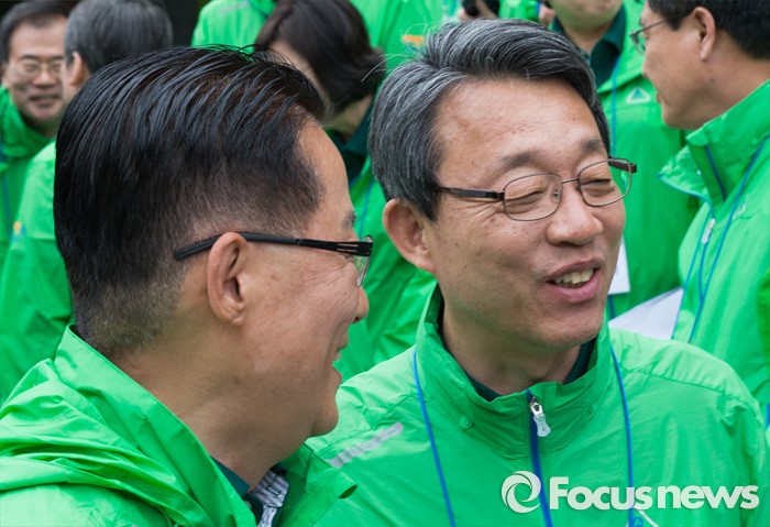 (양평=포커스뉴스) 국민의당 20대 총선 당선인 워크숍에서 합의 추대된 박지원(왼쪽) 원내대표와 김성식 정책위의장이 27일 오전 경기도 양평 한화리조트에서 선언문 낭독 후 대화를 나누고 있다.