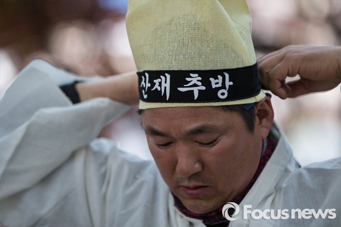 (서울=포커스뉴스) 29일 오후 서울 종로구 정부서울청사 앞에서 상경한 현대중공업노조원들이 구조조정 중단 및 산업현장 안정을 촉구하는 기자회견을 준비하고 있다.