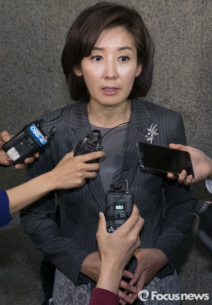 | △ 취재진 질문 답하는 나경원 |