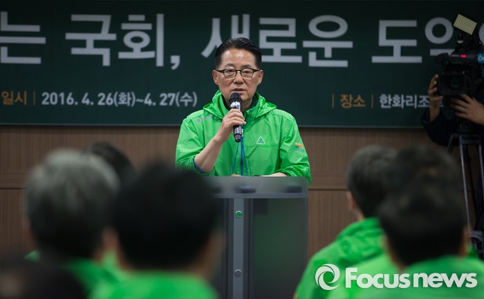 (양평=포커스뉴스) 국민의당 20대 총선 당선인 워크숍에서 합의 추대된 박지원 신임 원내대표가 27일 오전 경기도 양평 한화리조트에서 인사말을 하고 있다.