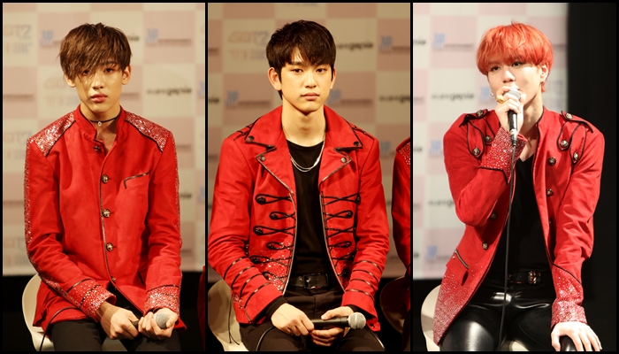 한편 갓세븐은 29일 서울 송파구 방이동 올림픽공원 SK핸드볼경기장에서 데뷔 후 첫 단독 콘서트 ‘플라이 인 서울’을 개최했다. 30일 오후 4시부터 서울 콘서트의 마지막 공연을 펼친다.이그룹 GOT7 멤버 뱀뱀, 주니어, 유겸이 30일 서울 송파구 올림픽공원 내 SK핸드볼경기장에서 열리는 첫 단독콘서트 ‘플라이 인 서울(FLY IN SEOUL)’의 마지막 날 공연을 앞두고 올림픽홀 뮤즈라이브홀에서 기자 간담회를 열고 “자작곡 콘서트, 여장, 팬들과의 눈맞춤을 꼭 해보고 싶었다”고 밝혔다. 사진은 왼쪽부터 뱀뱀, 주니어, 유겸.<사진제공=JYP엔터테인먼트>