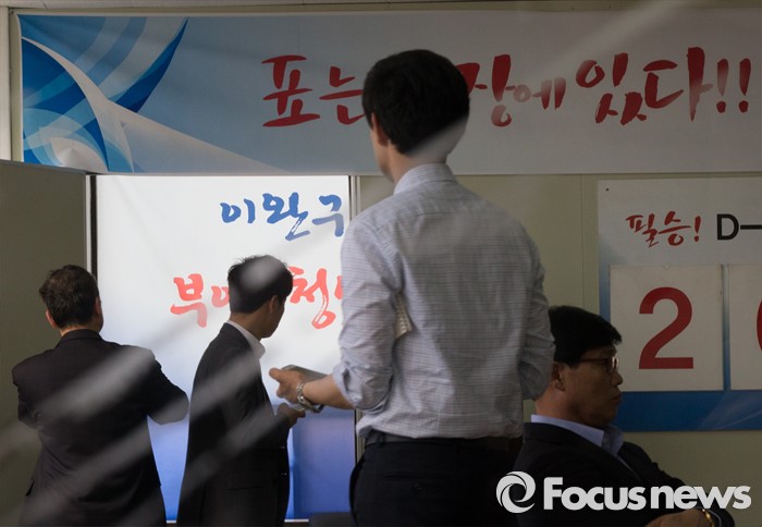 (부여=포커스뉴스) 29일 오후 이완구 전 국무총리가 2013년 재보궐 선거 때 사용한 충남 부여 선거사무소에서 사법부 관계자들이 현장검증을 실시하고 있다.