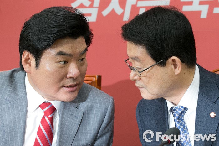 (서울=포커스뉴스) 원유철(왼쪽) 새누리당 원내대표와 정희수 기재위원장이 25일 오전 서울 여의도 국회에서 열린 상임위원장 · 간사단 연석회의에 참석해, 대화하고 있다.
